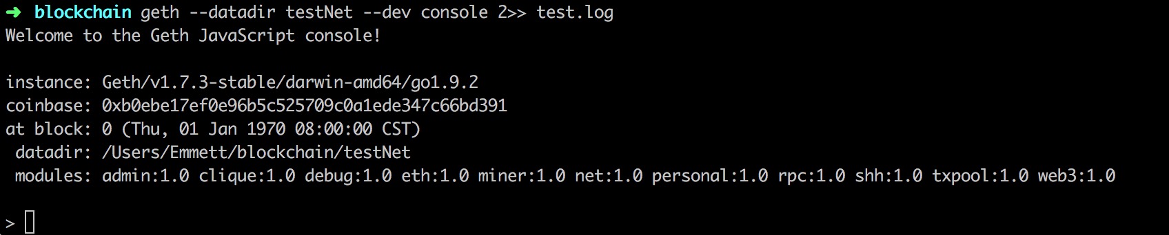 1 | geth --datadir testNet --dev console 2>> test.log |